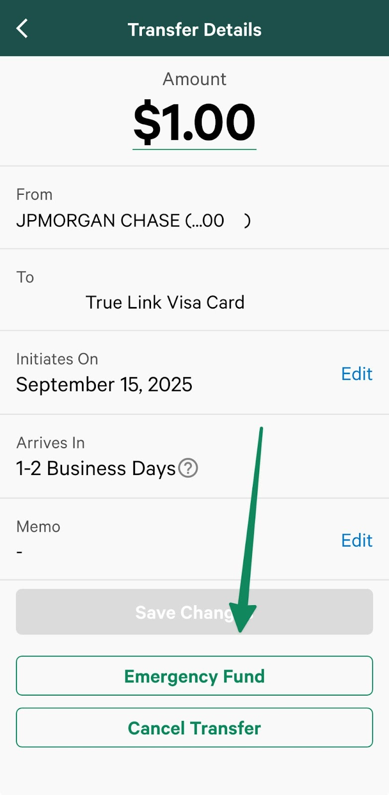 - Scroll down to the Upcoming Transfers section and click on “View and Manage Transfers.” Find and tap the transfer you would like to Emergency Fund from the “Transfers in the next 7 days” section