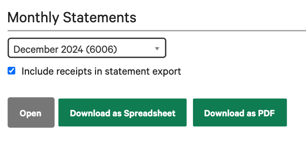 - Download as PDF: A PDF file will be downloaded with the receipt images included in the final pages of the statement.