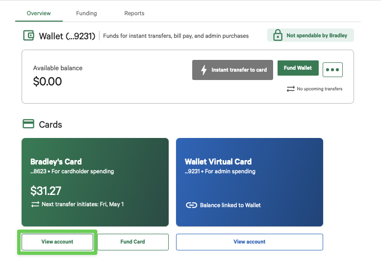 - Account fee settings - By default we charge the monthly fee to the card balance, but you can also adjust it to come from a linked funding account on file. Here you can adjust where the fee is deducted from.